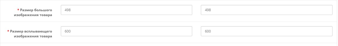 В настройках шаблона магазина у меня прописаны следующие значения для размеров изображений в карточке товара.